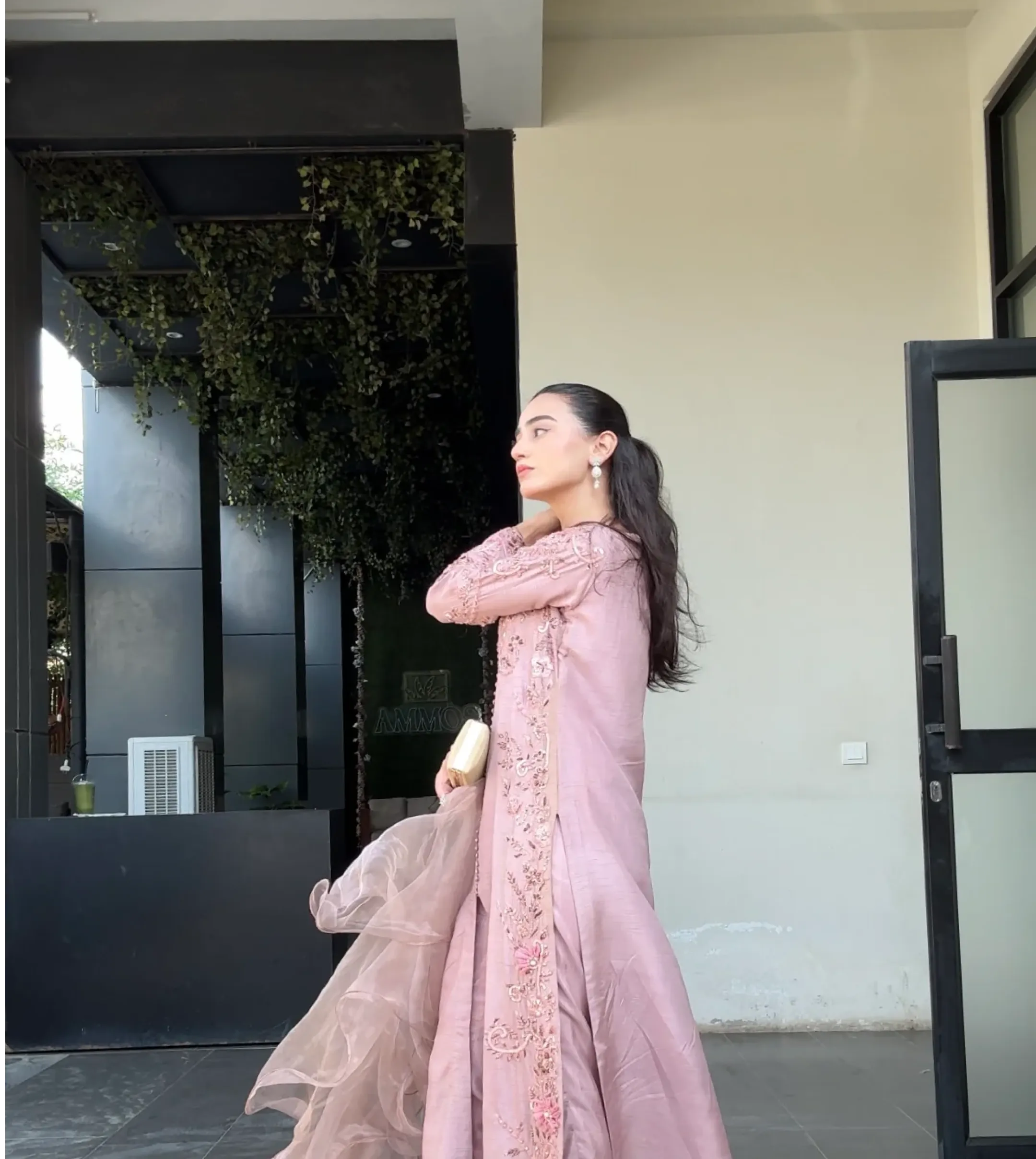 To complete the look, the outfit is paired with sleek cigarette pants and a beautifully ruffled dupatta that adds airy movement and blooming sophistication. Perfect for festive occasions, weddings, or formal soirées, Flora is an enchanting blend of tradition and modern refinement—an ensemble designed to leave a lasting impression.
