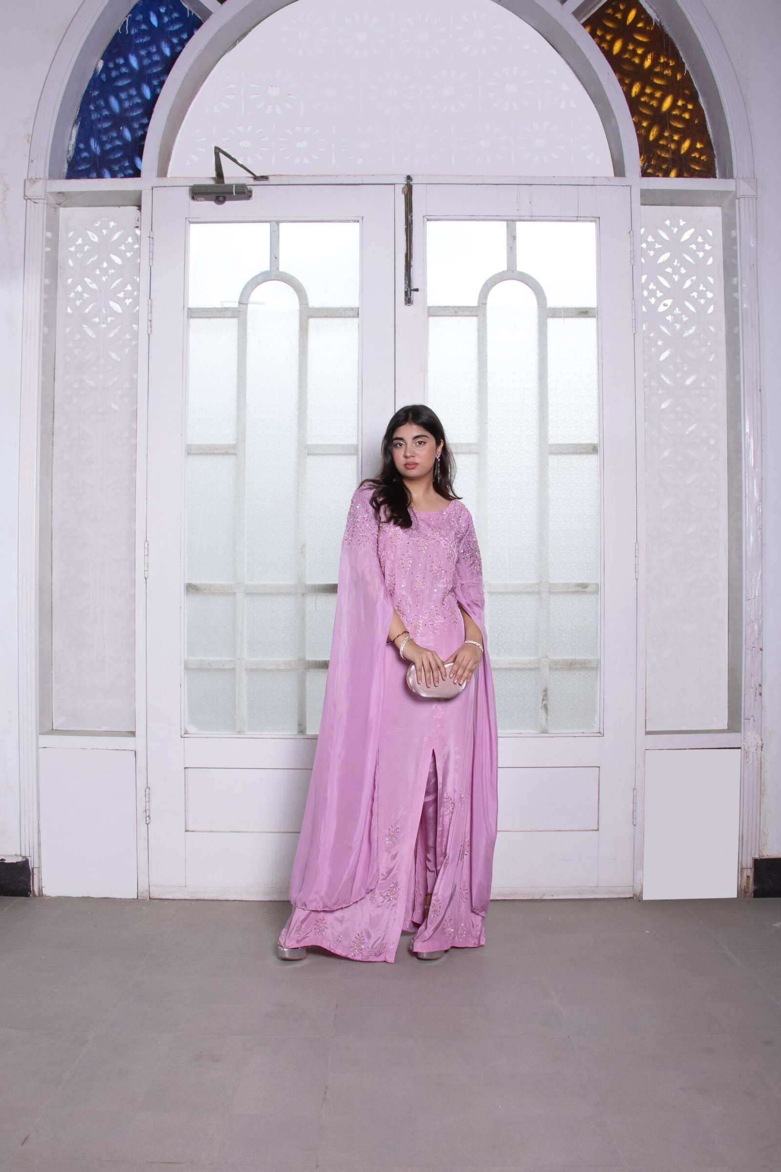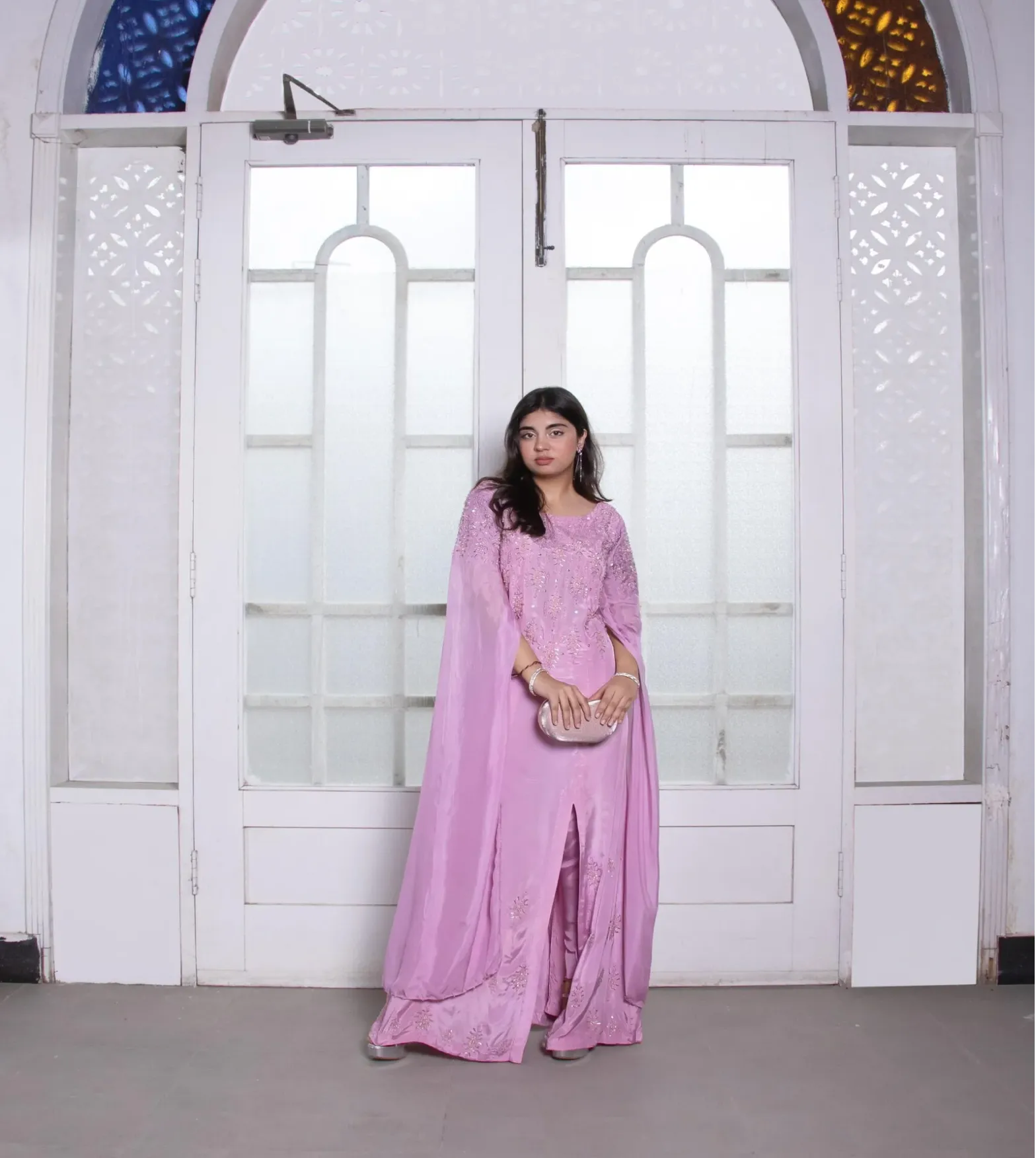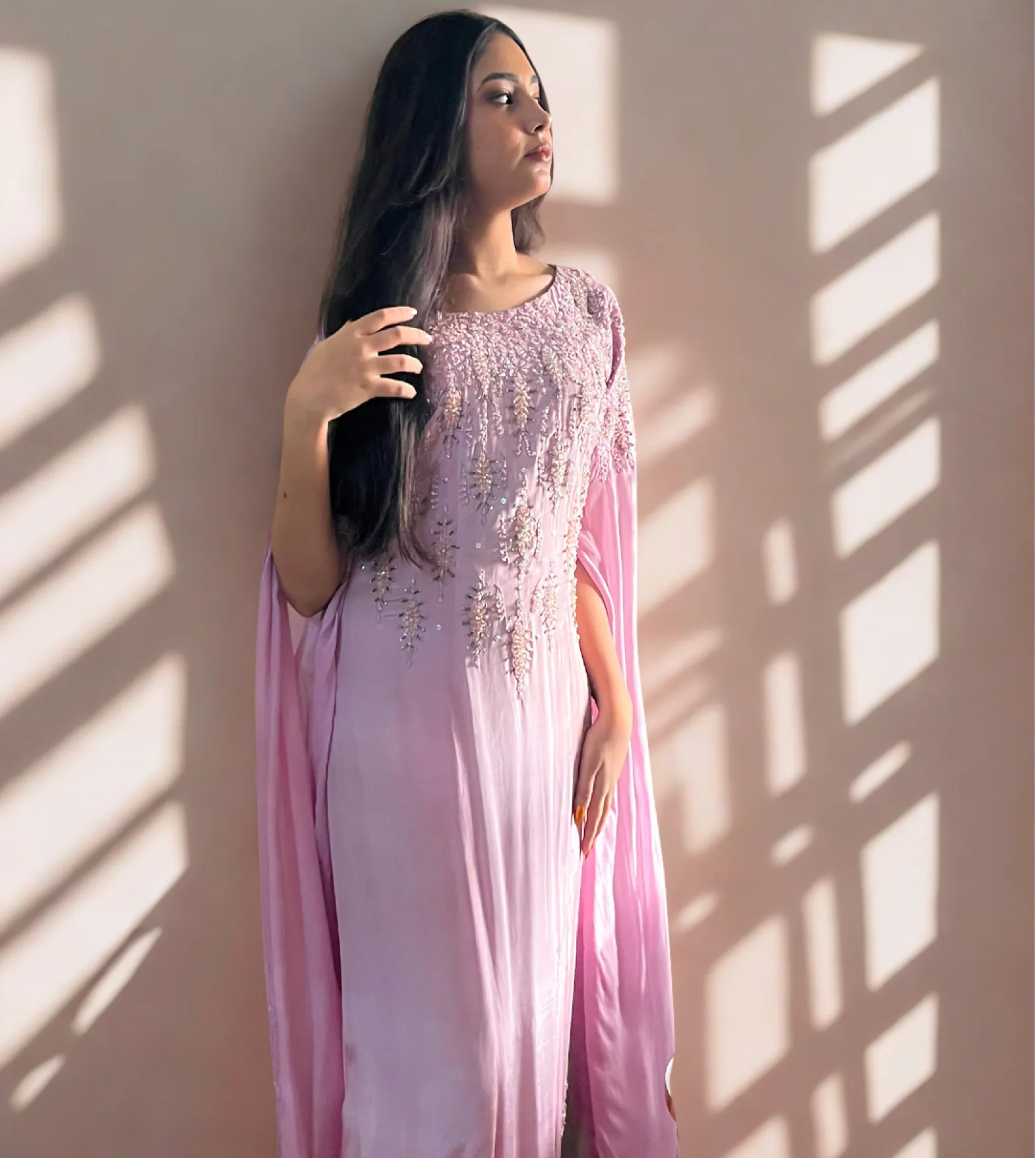 This exquisite long sleeve dress showcases a sleek front slit and sweeping floor-length sleeves, adding a touch of drama to its elegant silhouette. The neckline, sleeves, and hem are adorned with intricate pearl and stone embellishments, creating a harmonious blend of luxury and sophistication. Ideal for making a lasting impression at any formal event, this dress embodies timeless charm with a modern flair.