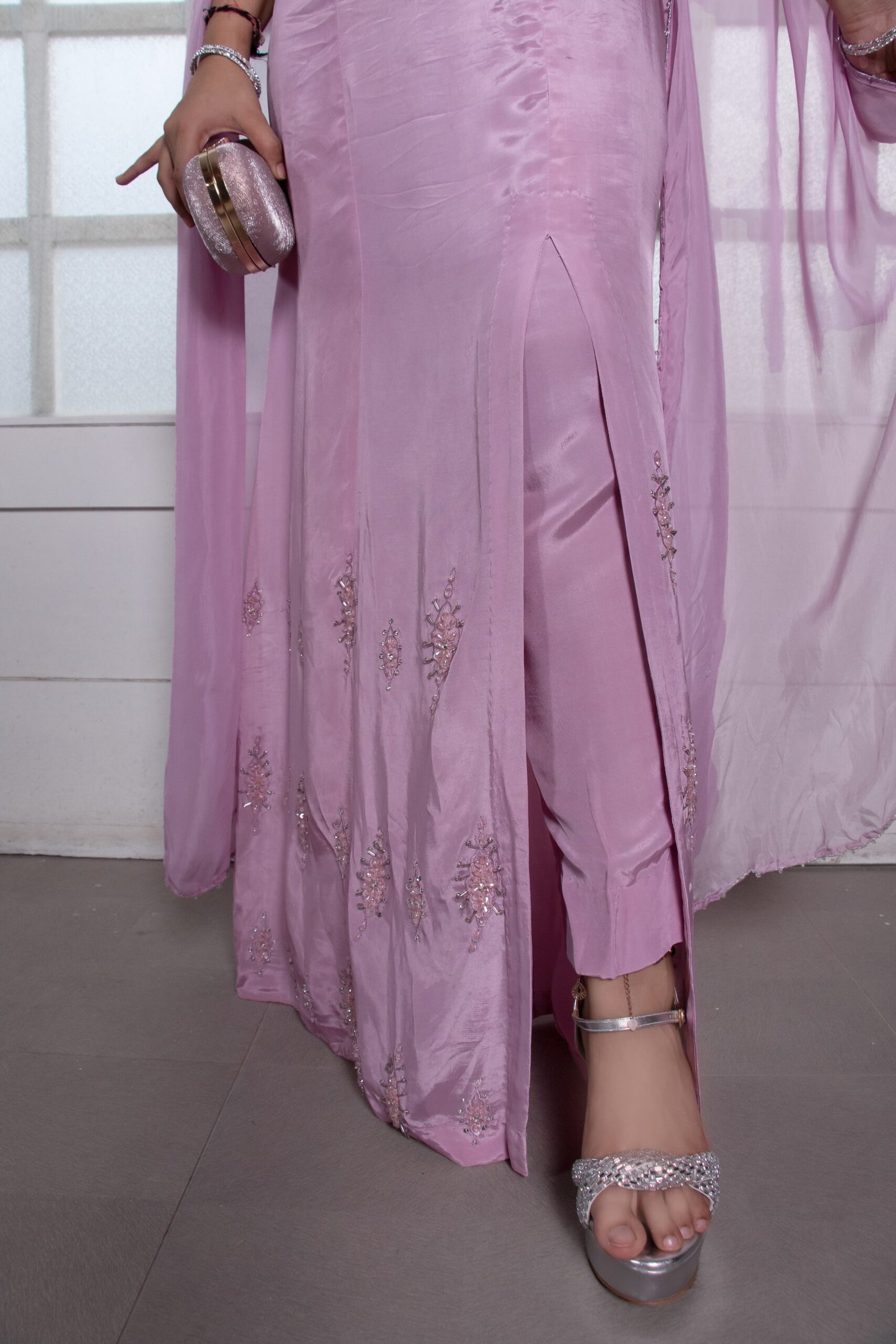Pure Silk long dress with slit in the front.
